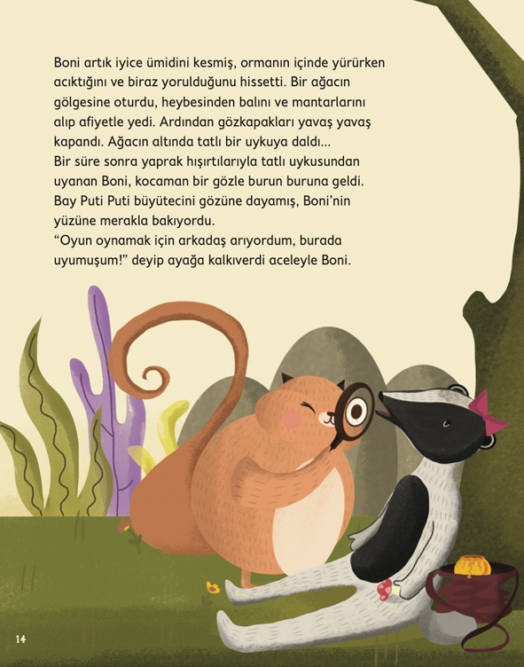 “Artık orman halkı yola çıkmaya hazırdı.” Şarkılar söyleyerek oyunlar eşliğinde arkadaşlarla çıkılacak yol, her biri için ne büyük bir heyecandı! Bir de unutmadan: O günden sonra Baykuş Bilge’nin “Ben bilirim” diye öttüğünü bir daha hiç ama hiç duyan olmadı.